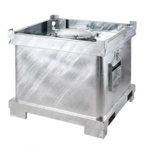 Materiál - Oceľový plech Objem - 800 l Hmotnosť - 190 kg Nosnosť - 1 390 kg Šírka - 1 200 mm Hĺbka - 1 000 mm Výška - 1 240 mm - Kontajnery na kvapalné látky. -...