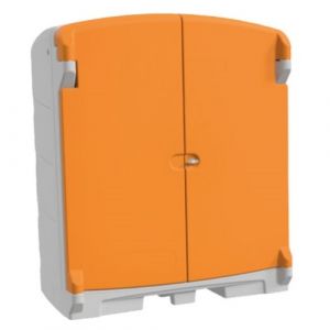 Dĺžka - 1600 mm Šírka - 1140 mm Výška - 1980 mm Hmotnosť - -100 kg Materiál - polyetylén Objem - 220 l Farba - oranžová, sivá Nosnosť - 600 kg Vyrobená z vysoko odolného...