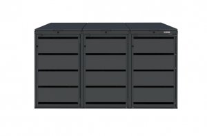 - Dĺžka [mm] 1770 - Šírka [mm] 680 - Výška [mm] 1140 - Hmotnosť [kg] 55.5 - Materiál: pozinkovaný plech - Farba: Antracit (RAL 7016) Moderný a estetický prístrešok s odolnou a...